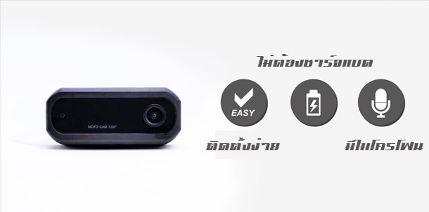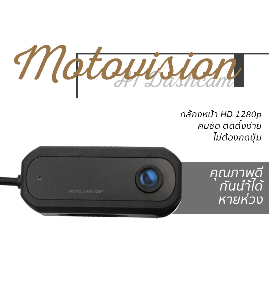 ข้อมูลเฉพาะ: กล้อง Motovision รุ่น M1 ออกแบบมาสำหรับมอเตอร์ไซค์โดยเฉพาะ ติดตั้งบนตัวรถไม่ต้องติดที่หมวก เริ่มถ่ายทุกครั้งตอนสตาร์ทรถ เมมไม่มีวันเต็ม